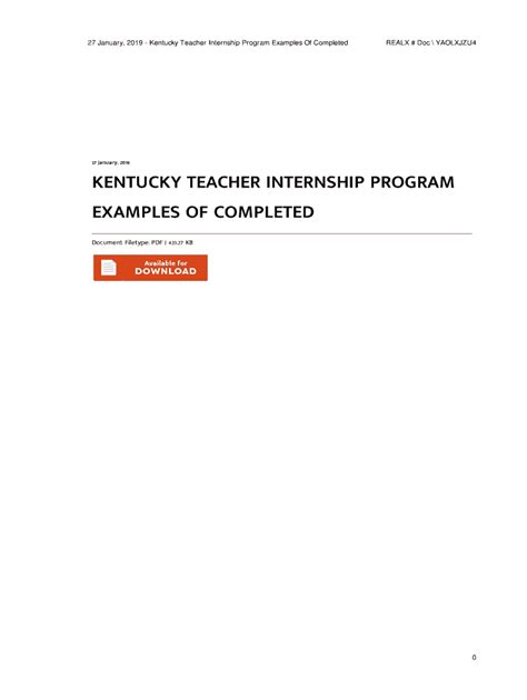 Free Download kentucky teacher internship program examples of completed Gutenberg PDF